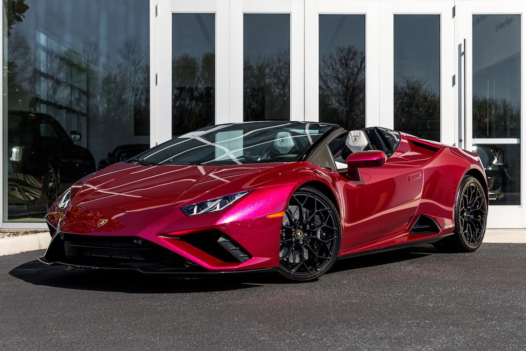 Lamborghini Orlando is pleased to offer this stunning 2022 Lamborghini Huracan EVO Spyder, dressed in Viola Bast over Nero Ade interior. In addition to the standard factory equipment, this EVO Spyder is equipped with the following options: Smartphone Interface, CCB w/ Black Calipers, Big Forged Composite Sport Seats, 20" Narvi Forged Rims, Lamborghini Sensonum Audio, Ambient Light Package, Contrast Stitching, Life Style + Driver Pack, Style Package in High Gloss, EVO-TRIM Sportivo, Windscreen Frame in High Gloss Back, Cruise Control System, Embroidered Lamborghini Headrests, Painted Flap & Paint Protection Film.